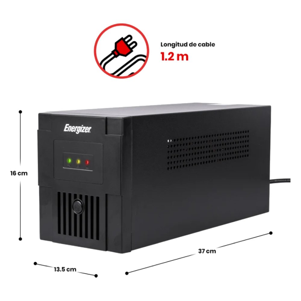 Protege tus dispositivos electrónicos con el No Break UPS Energizer ERENUPS15VA, diseñado para brindar energía de respaldo inmediata ante cortes eléctricos. Su capacidad de 1500VA / 900W y su sistema de regulación automática (AVR) aseguran un suministro estable, evitando daños por variaciones de voltaje.
